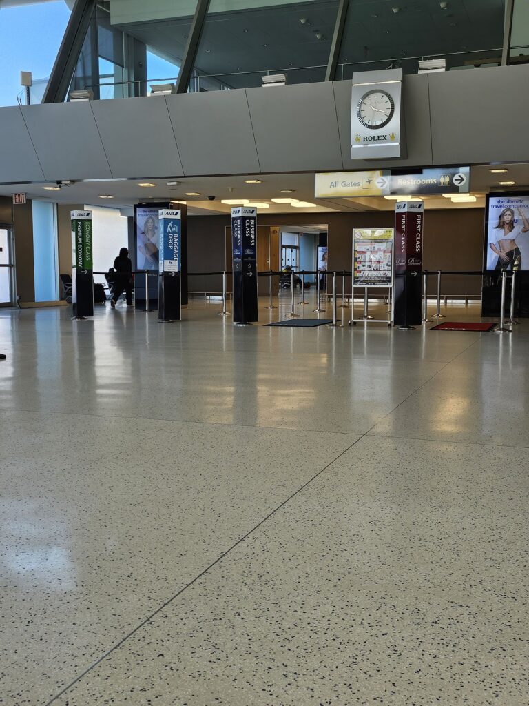 小さいターミナルでチェックイン前に入れるお店はありません。