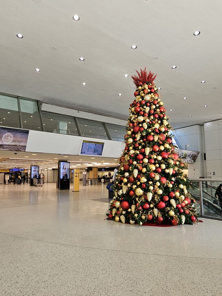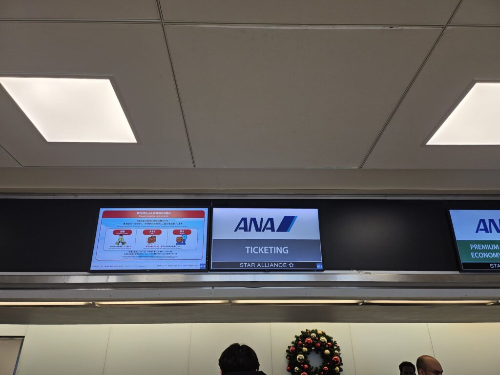 ニューヨークに来る時と同じCAさんの方々に迎えられお帰りなさいと言っていただきました。ステイ日数が同じでした。帰りはお昼発満席の15時間お世話になりました。私達と同じようにロックフェラー・センターにクリスマスツリーを見に行ったCAさんもいらっしゃいました。