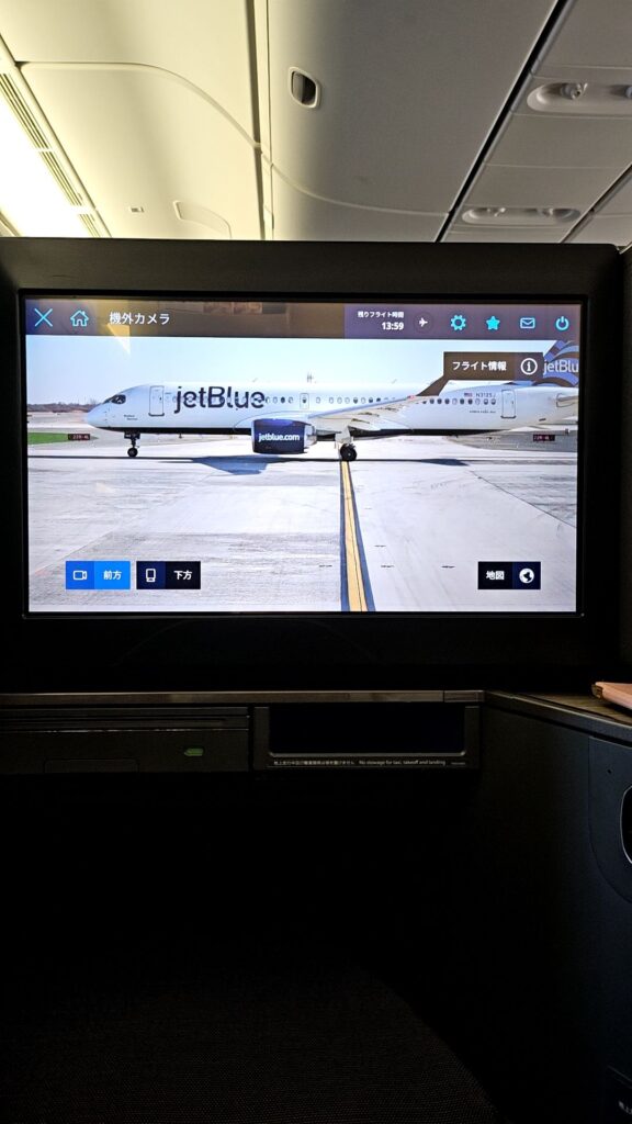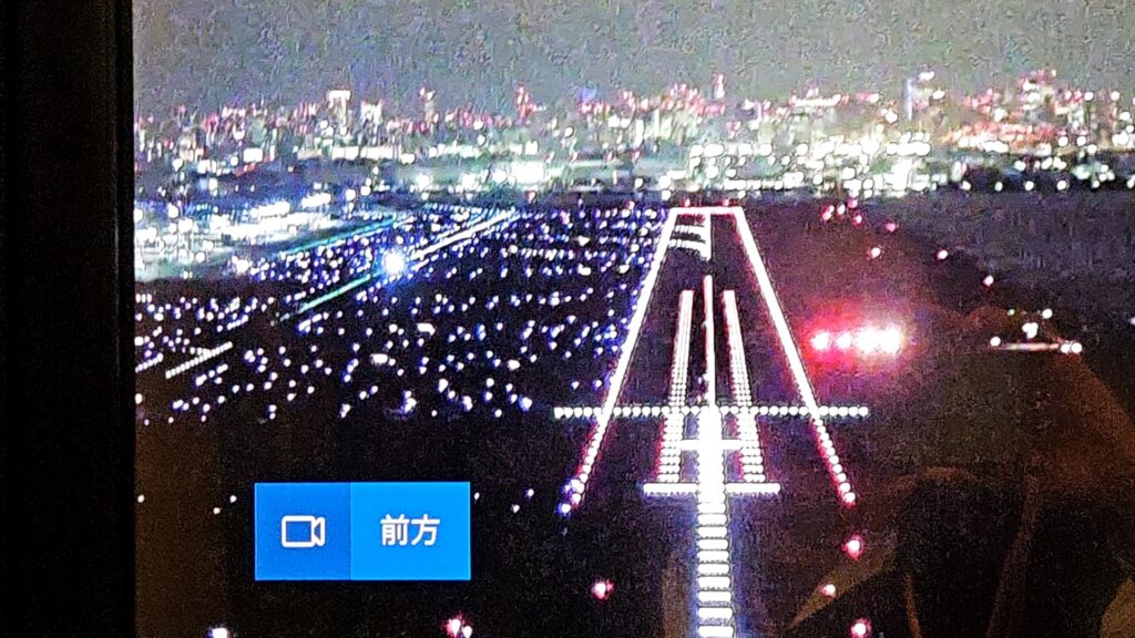 動き出しました。モニターで前方カメラを見ると横断中の飛行機が見えたり、渋滞の様子が見れて面白いです。