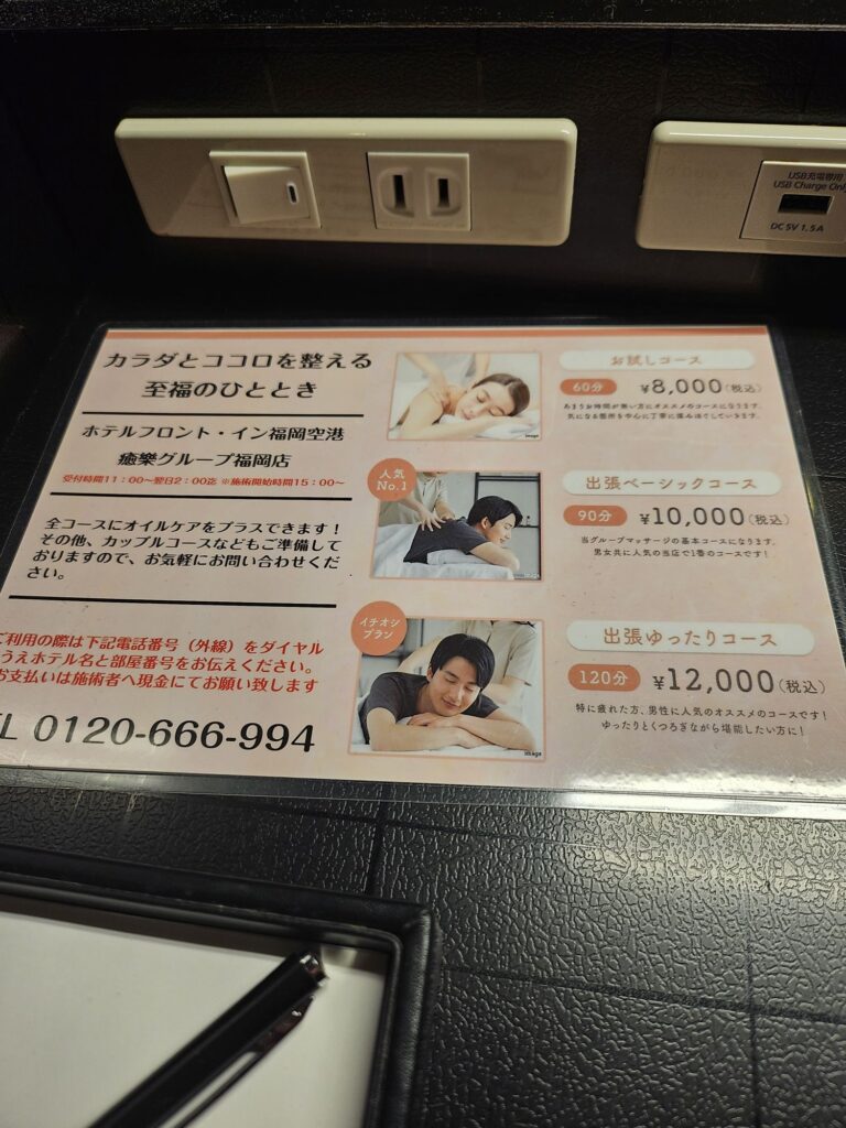 テーブルに魅力的なご案内!90分コースにしました!