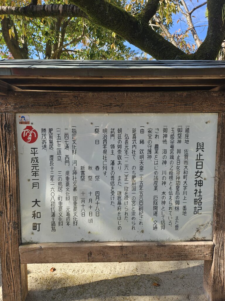 次は『與止日女神社』(よどひめじんじゃ)です。小ぢんまりした神社です。ここは肥前国の一宮で御祭神は與止日女です。応神天皇の叔母である神功皇后の妹です。