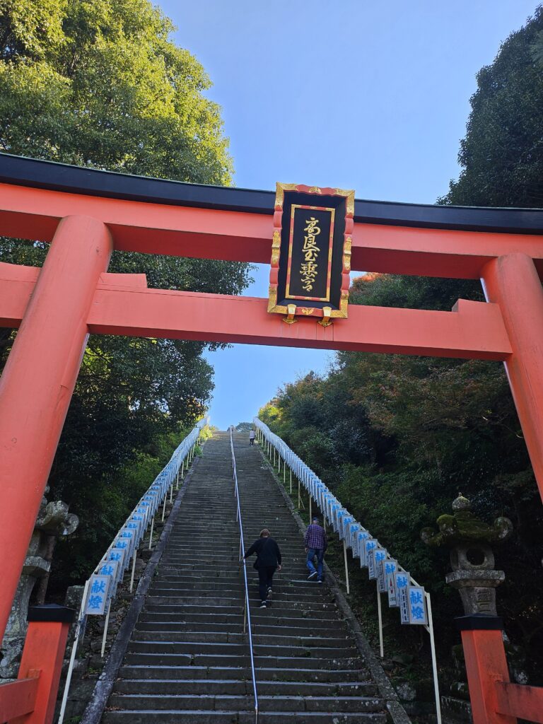 続いて『高良神社』です。ここも急な階段。ケーブルカーがありますが健康のために歩きます。足がプルプルしています。