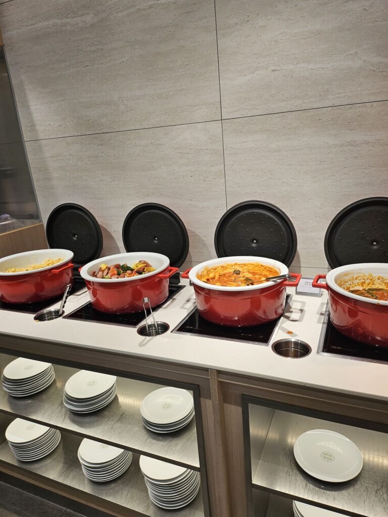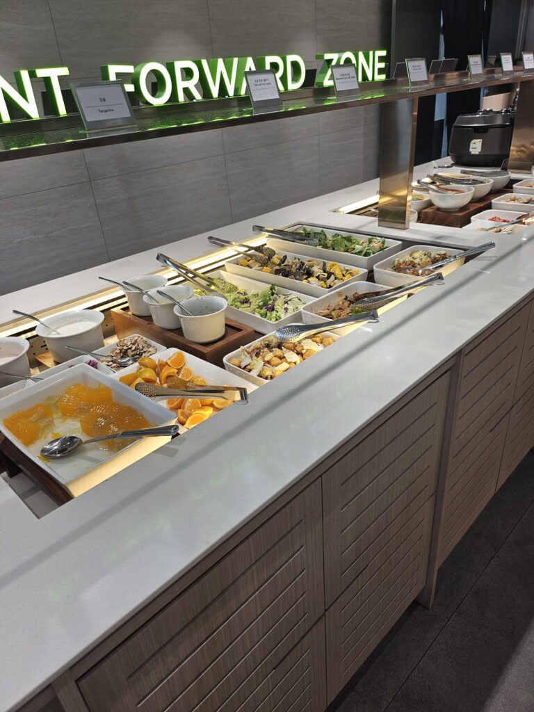 空港ではプライオリティーパスの使えるラウンジがありました。メニューはまずまずあります!