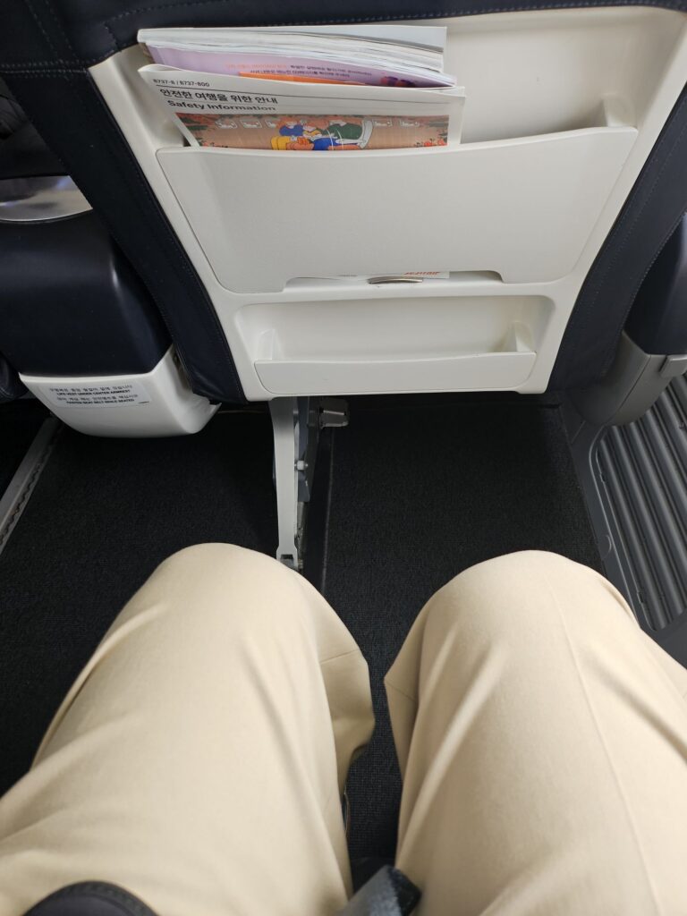 帰りもチェジュ航空のビジネスライトですが最前列でないのですがシートピッチは広々。