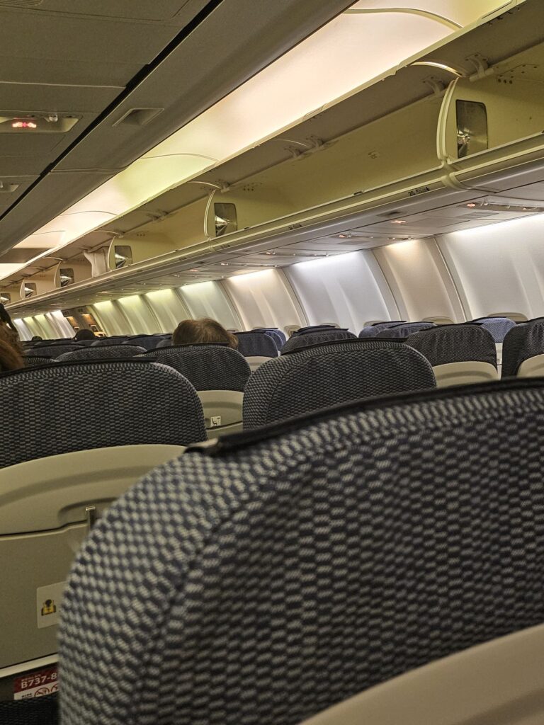 3+3のシートで狭いです。帰りはオールエコノミーの旅なのでがんばります!