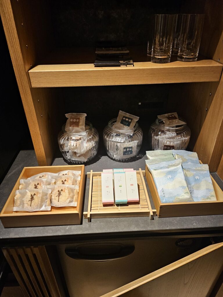 宿泊するフロアにそれぞれラウンジがありウェルカムドリンクでお茶菓子を食べられます。