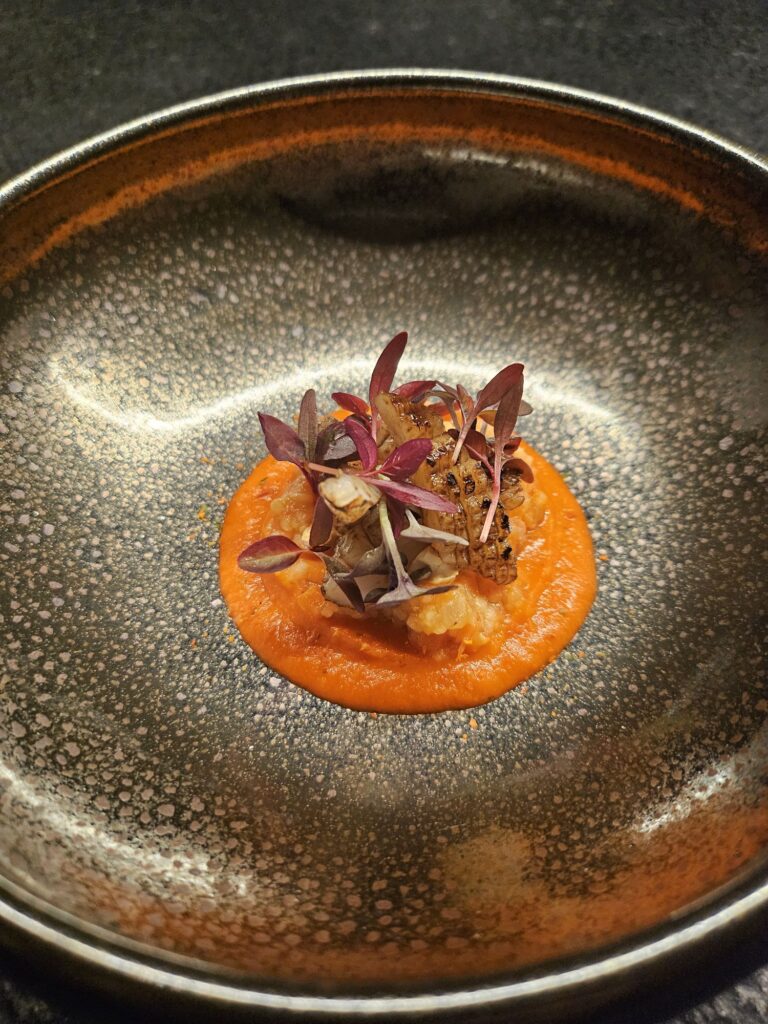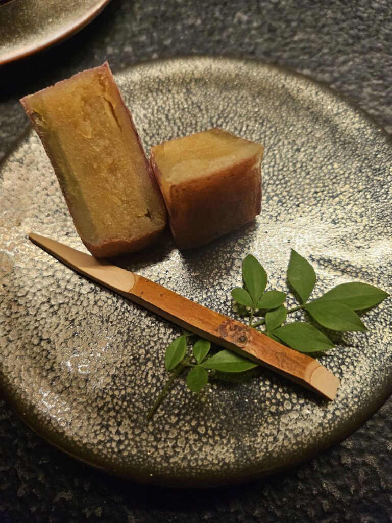 ノンカフェインの黒文字茶とさつまいもの金つばです。