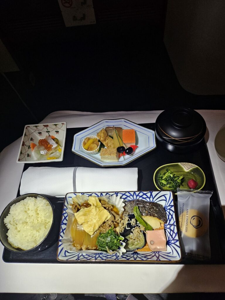 朝食です。しばらく和食を食べられないので和食にしました。やはりANAの和食は最高です!