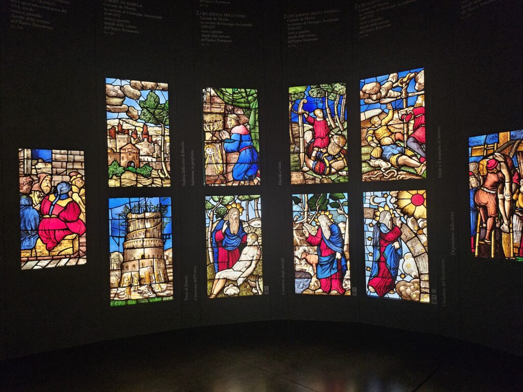 続いて階段を下りてからドゥオーモの内部に入ります。ミサをしてました。ステンドグラスがとてもきれいです。