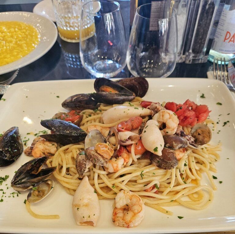 シーフードスパゲッティーはめちゃくちゃ美味しくボリュームがありました。ムール貝、あさり、イカ、海老などが入っていました。