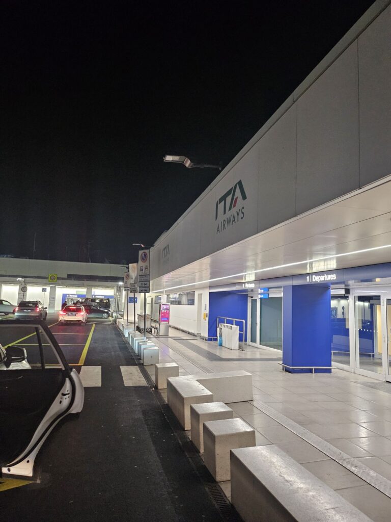 ミラノリナーテ空港に到着しました。午前六時半なので外は真っ暗です。