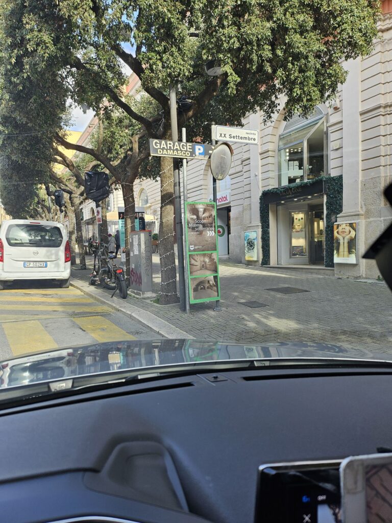 マテーラに着いたら予約していた公共駐車場に止めようとしますが工事があって駐車場にたどり着きません。結局駐車場の従業員を呼び出して運転を代わってもらって行きました!