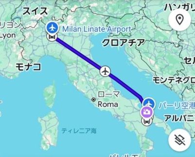 今日はミラノからITAAIRでバーリへ行きます。目的は洞窟に住居のある地区マテーラへ行き洞窟教会の見学や洞窟ホテルに宿泊することです。ホテルからUberでミラノリナーテ空港へ行きます。Uber便利ですね。ここのUberは特別な運転手しか許可されておらず一般人がUberをすることができないそうです。