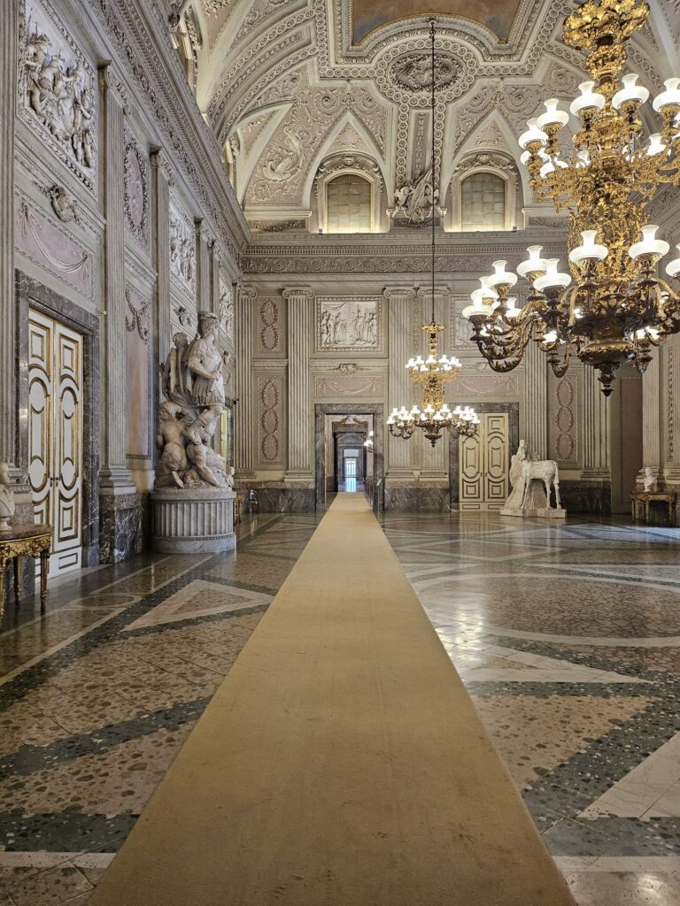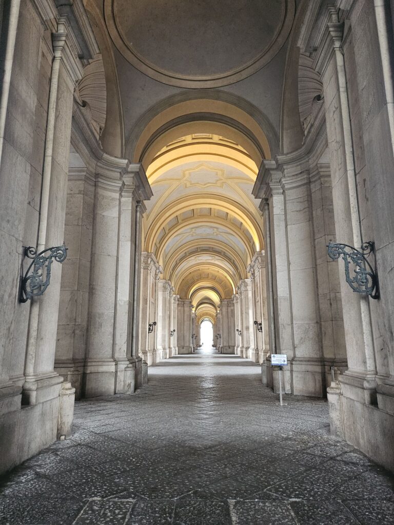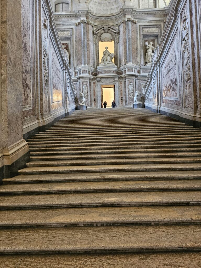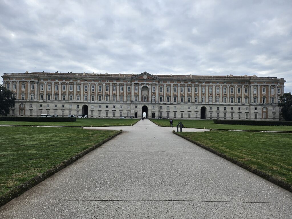 カゼルタ宮殿へまずいきました。とても大きな宮殿で一部が公開されています。ナポリの北西部にナポリ王国ブルボン家のカルロス7世とその息子によりベルサイユ宮殿を参考に作られているようです。