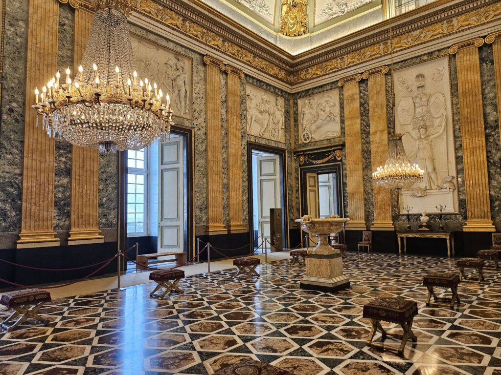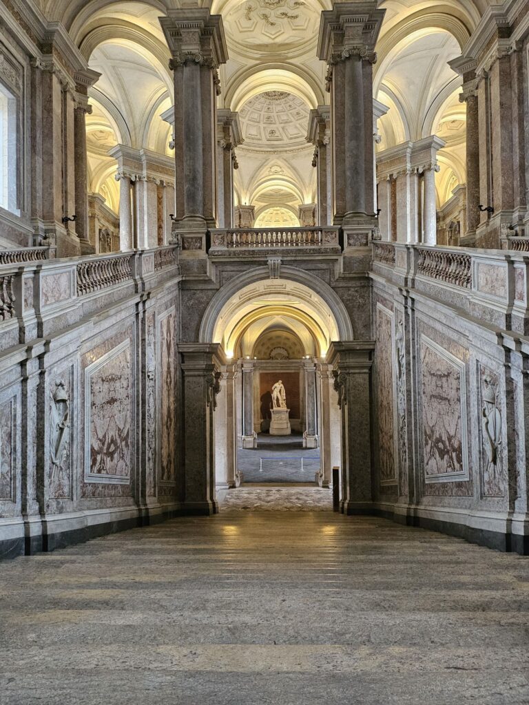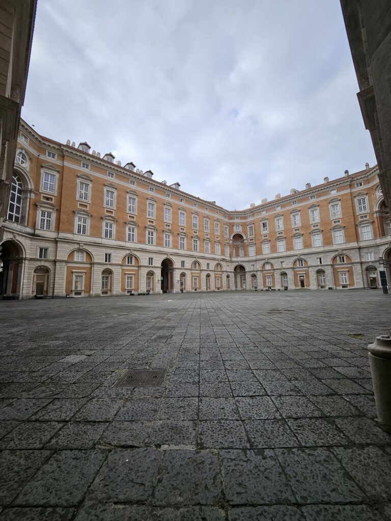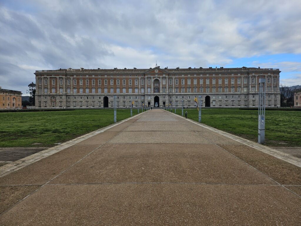 カゼルタ宮殿へまずいきました。とても大きな宮殿で一部が公開されています。ナポリの北西部にナポリ王国ブルボン家のカルロス7世とその息子によりベルサイユ宮殿を参考に作られているようです。