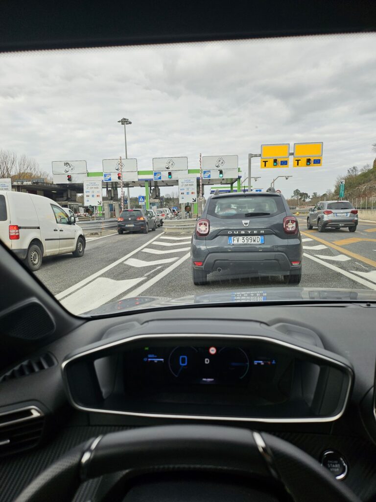 次に『ヴィッラ・アドリアーナ』へ行きます。高速道路を使いますが黄色い看板の方は日本で言うETC ですのて白い方でチケットを取って出口で清算する方にします。