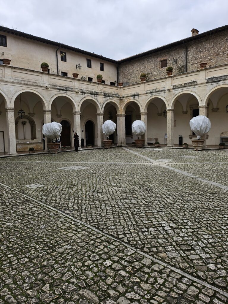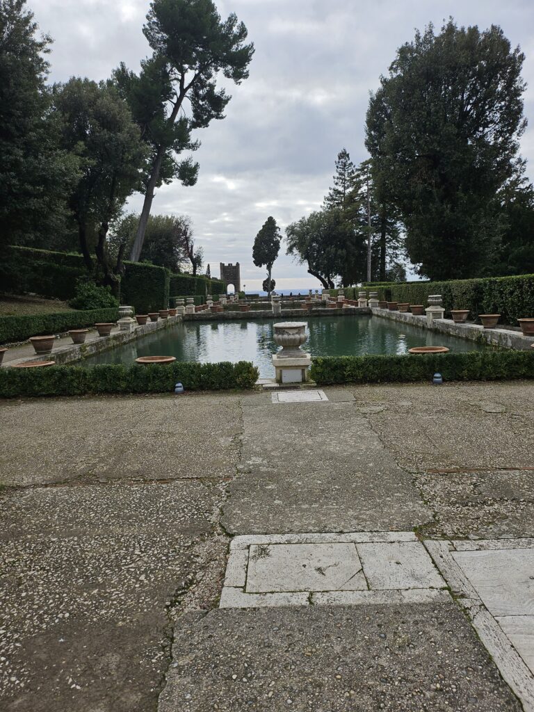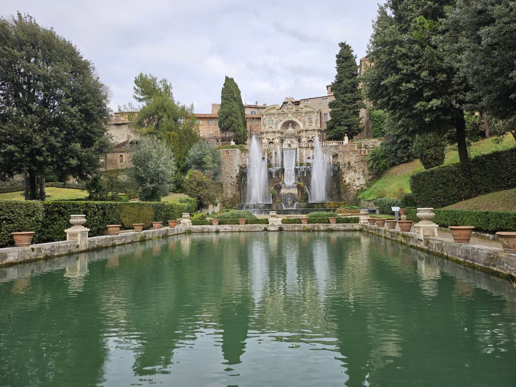 チボリのホテルDomus De Cintiへ行きましたが受付すら分かりません。ホテルの従業員とメッセージでやり取りをしたところまだ3時前なのでチェックインできず、後で再度来てということなので荷物をがらがらとしながらチェックインの前に『エステ家の別荘』に行くことにしました。ここは中世の修道院を枢機卿イッポーリト・デステが先程訪問したヴィラ・アドリアーナに感動し改築した別荘です。