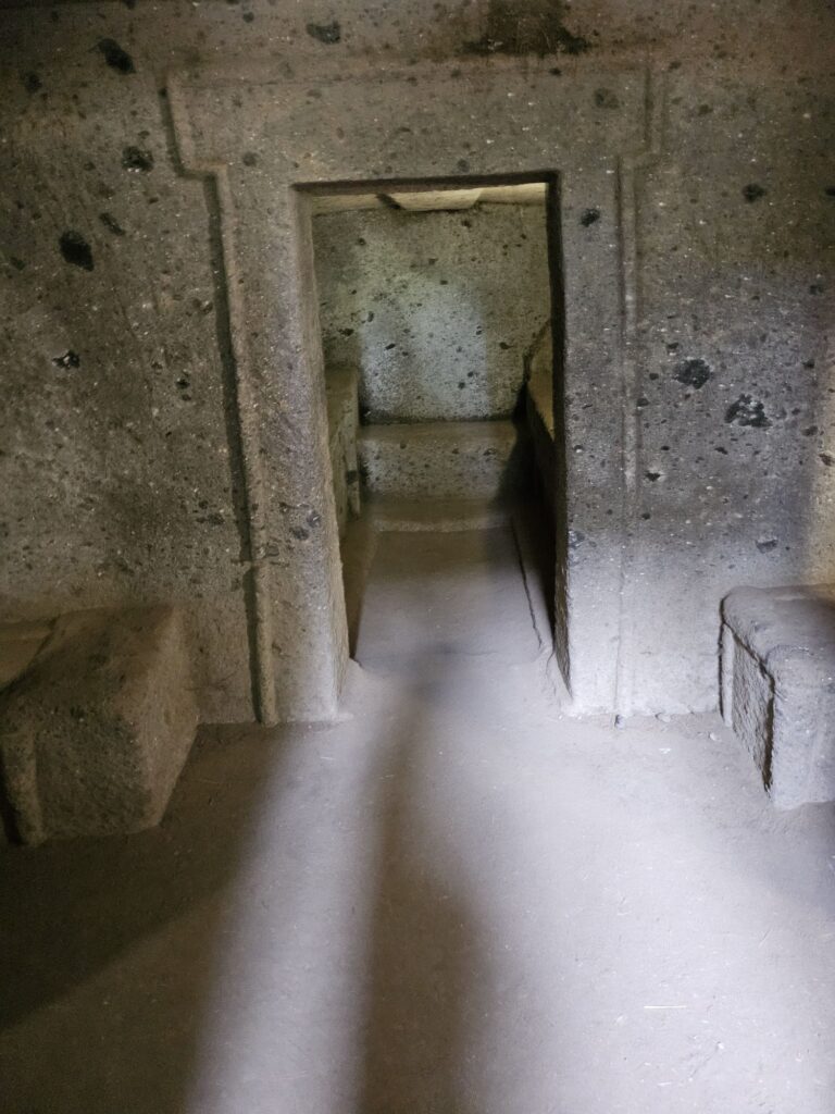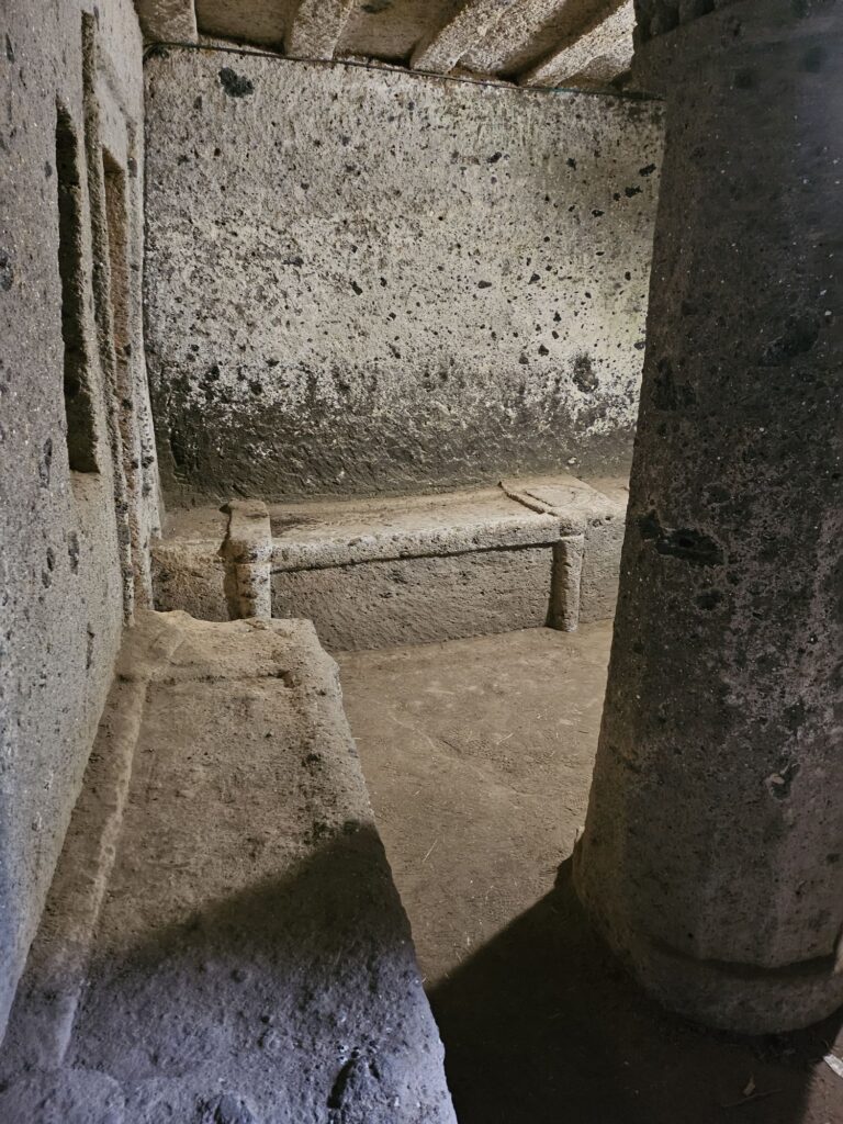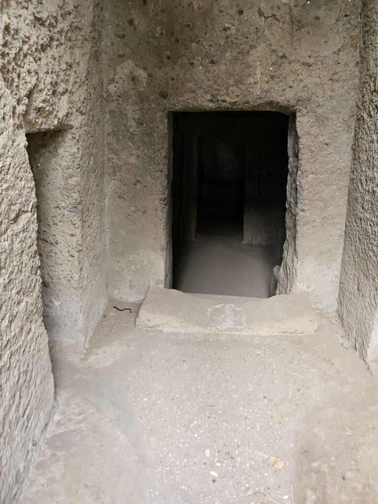 ローマから50kmほどのところのエトルリア文明の遺跡「チェルヴェーテリ(Cerveteri)」のネクロポリス(墓地遺跡)です。