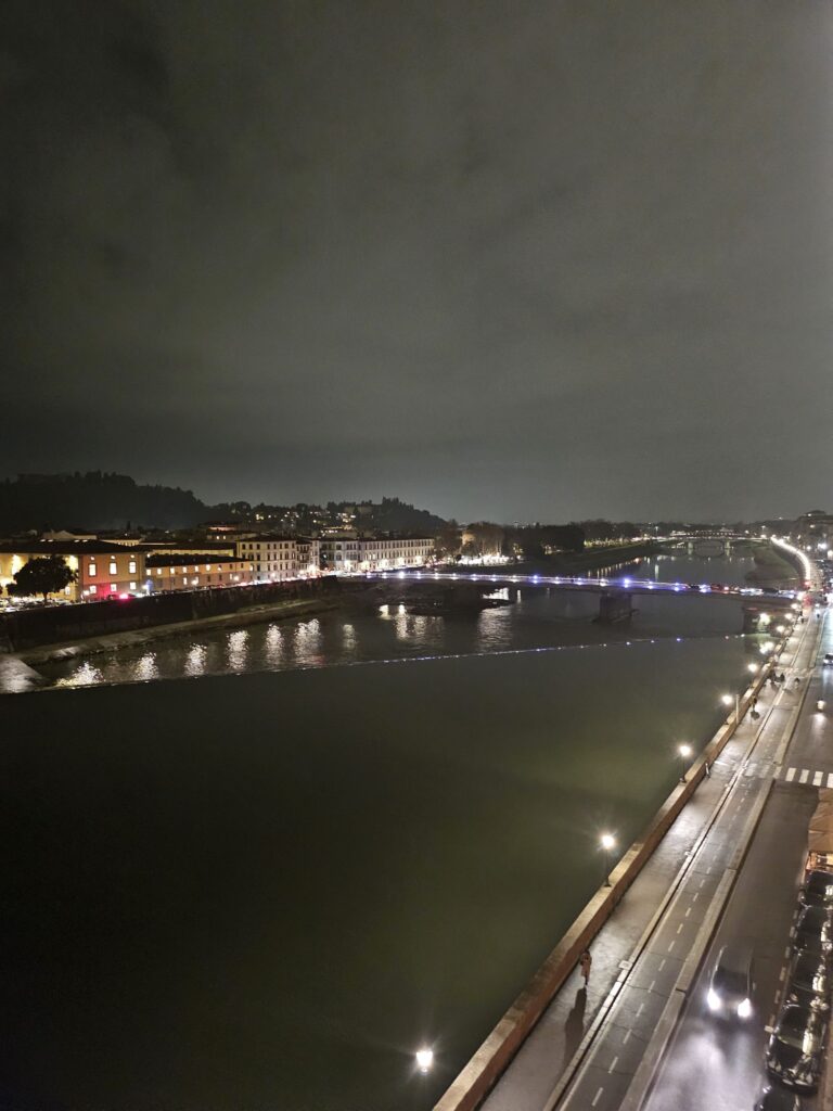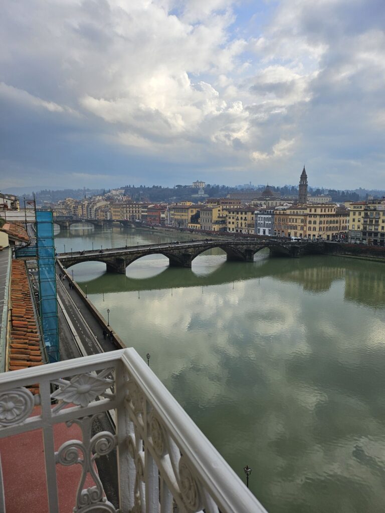 部屋のベランダからの様子です。アルノ川です。ヴェッキオ橋も見えます。