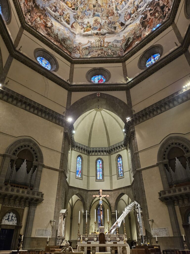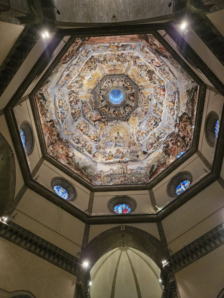 以前フィレンツェに来たときに、中国人観光客が充電コードが飛び出ているスーツケースを大聖堂脇に置いて他のところへ行ってしまい爆弾疑惑で閉鎖され入れなかった『サンタ・マリア・デル・フィオーレ大聖堂』へいきました。相変わらず長蛇の列でしたが30分くらいで入れました。無料です。
