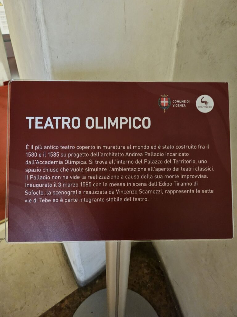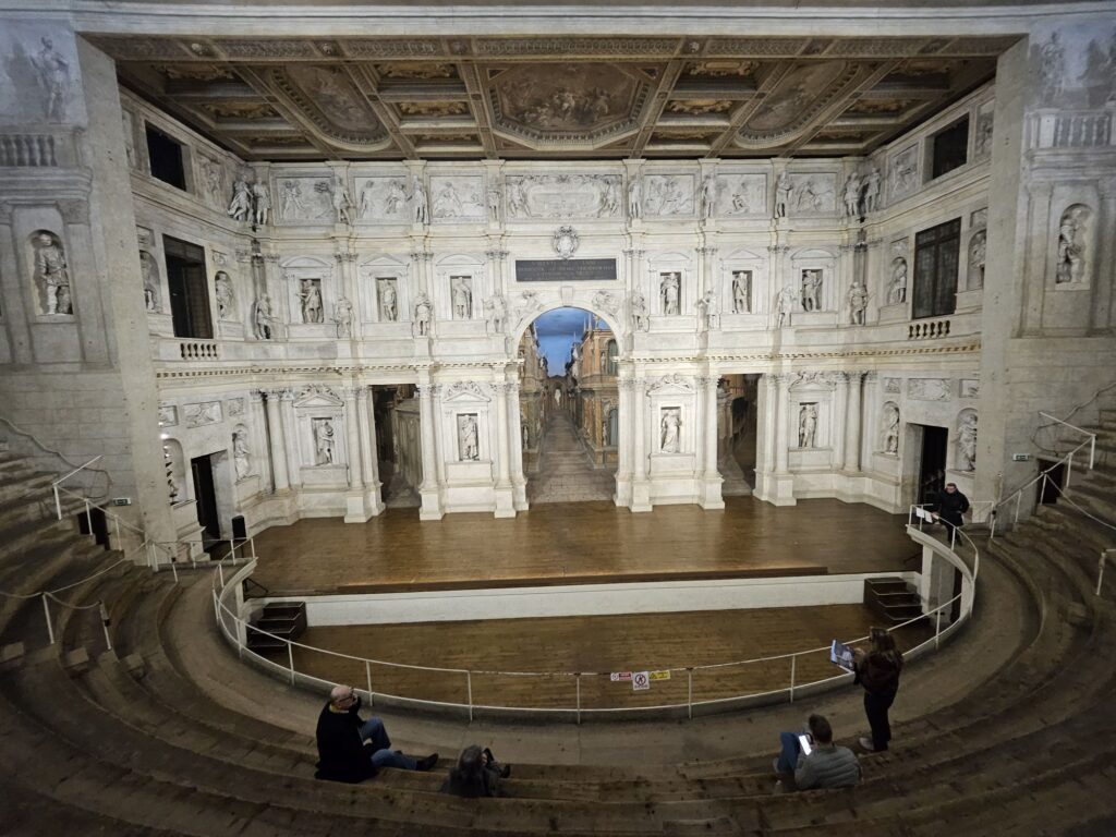オリンピコ劇場です。16世紀後半にローマの野外劇場に似せて屋内に作られたそうです。