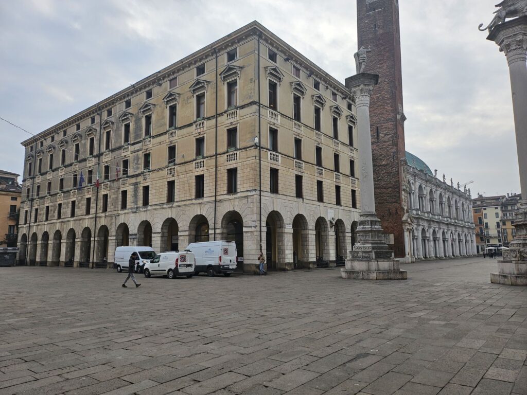 最初パドバへ行く予定でしたが時間があるので世界遺産の街ビチェンツァへ行きました。三時間かけて北上しました。