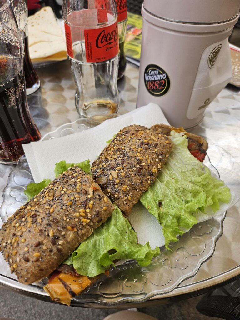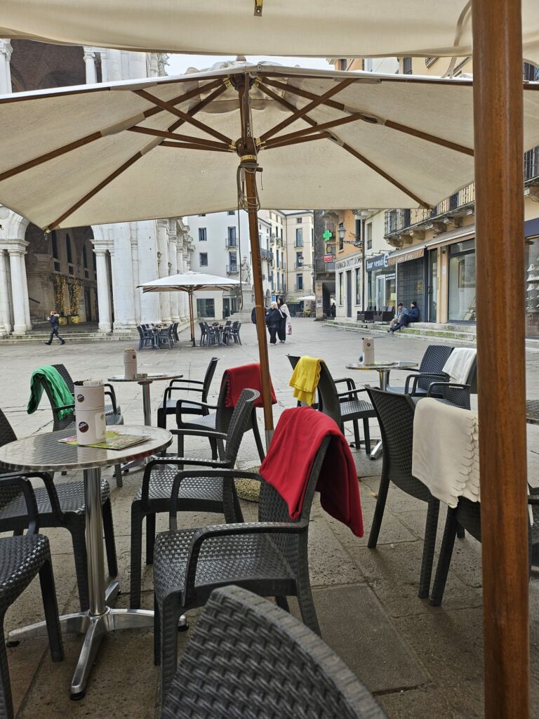 バシリカ・パッラディアーナのあるシニョーリ広場でパニーニを食べました。あまり口に合いませんでした。イタリアで珍しい~