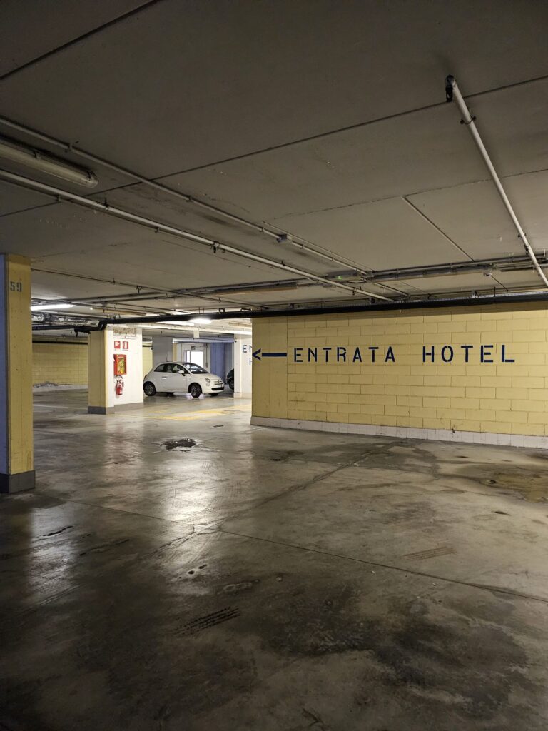 ホテルの前に大きな駐車場がありテスラ用のところもありますが宿泊者用の駐車場はホテルの建物の地下だと教えてもらいました。