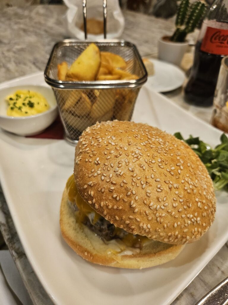 夕食はホテルでハンバーガーを食べます。美味しかったけどボリュームが~。
