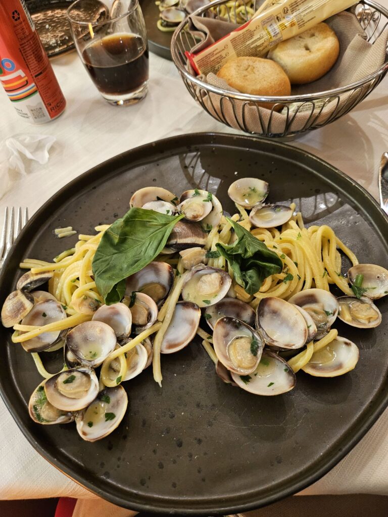 ボンゴレを食べました。海がまわりにあるのでとても美味しかったです。