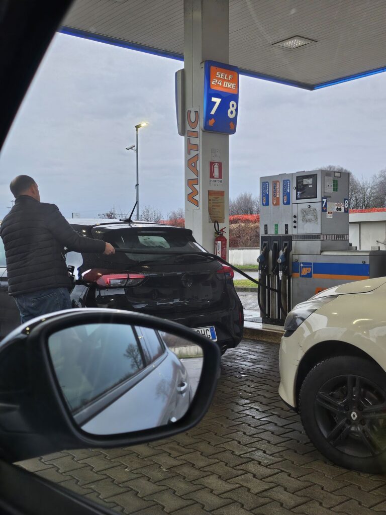 レンタカー返却前にガソリンスタンドで満タンにします。隣のブースでは給油口が反対でホースを引っ張りながら給油してました。