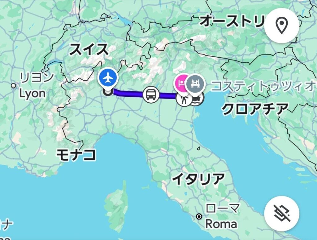 ここから三時間の運転で車を返却してミラノ・マルペンサ空港のシェラトンホテルへ行きます。