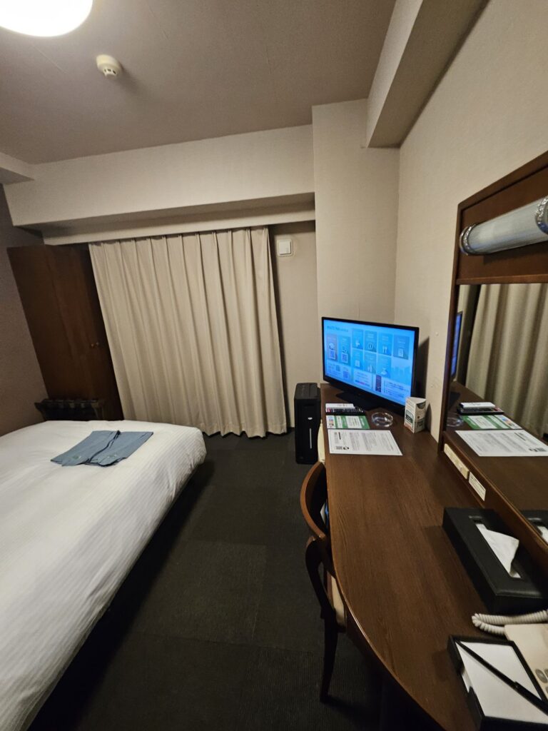約七時間半でルートイン弘前城東に着きました。部屋はよくあるビジネスホテルです。