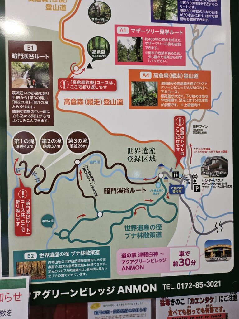 それでは世界遺産の白神山地へ行きます。白神山地には世界最大規模のブナの原生林があり世界遺産に認定されました。まずはここの『ANMON』で情報収集と熊よけの鈴を買いました。今年5月に熊が二回出たそうです。