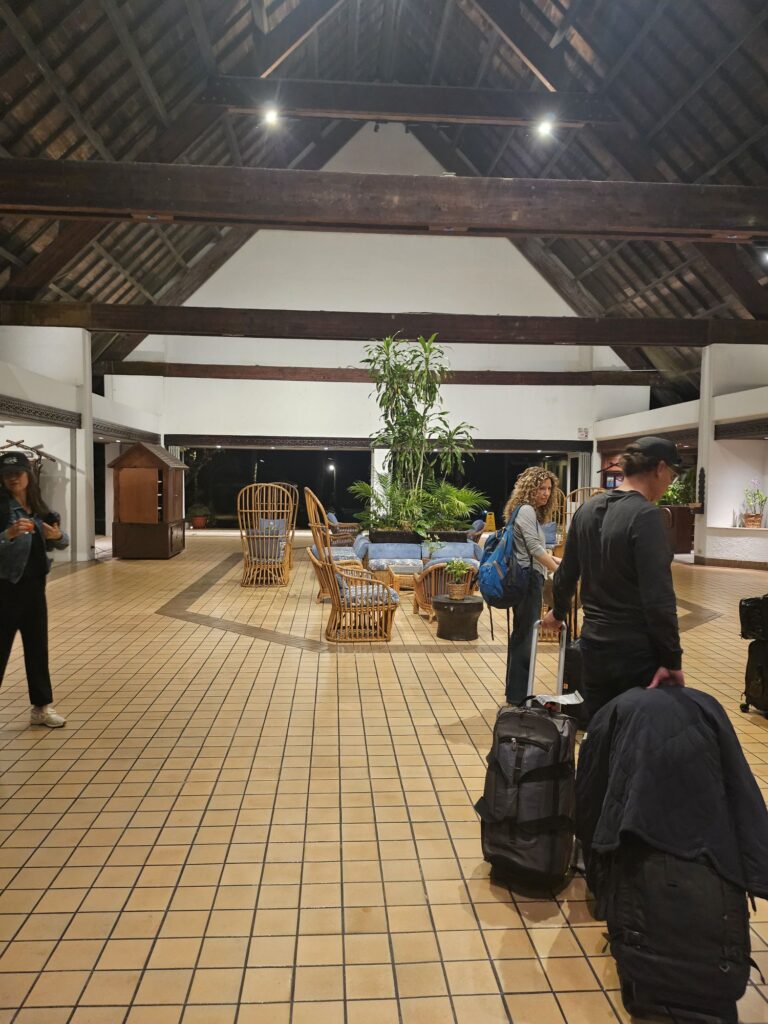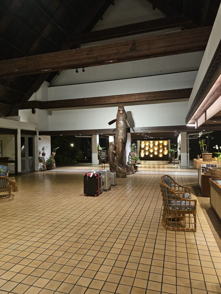 ホテル「パラオパシフィック・リゾート」の送迎車が来てホテルまで送ってくれました。エントランスです。夜22時半頃でしたがホテルのスタッフがウェルカムドリンクを用意して歓迎してくれました。