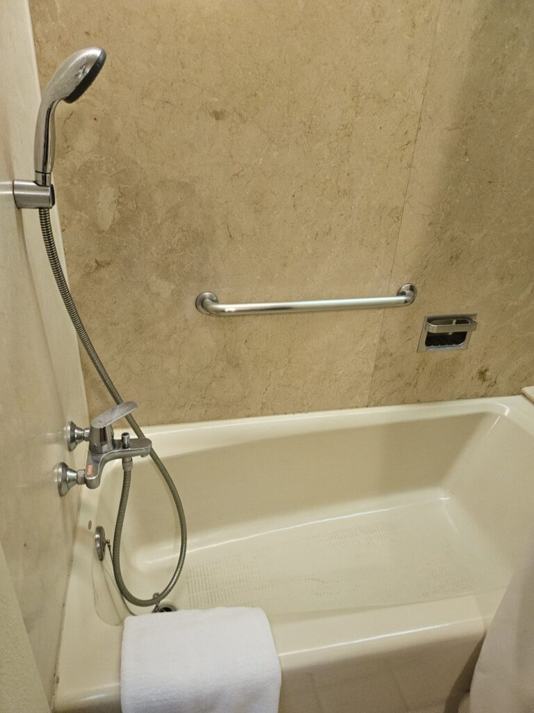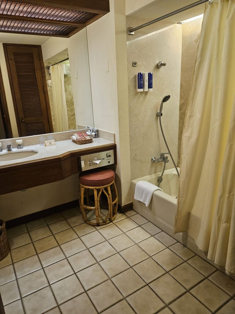 お風呂は古いかな…でもシャワーは使いやすく水圧も十分です。アメニティーも揃っています。