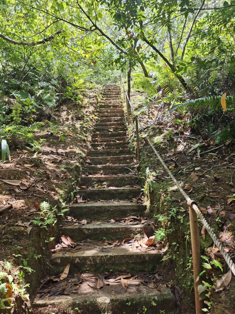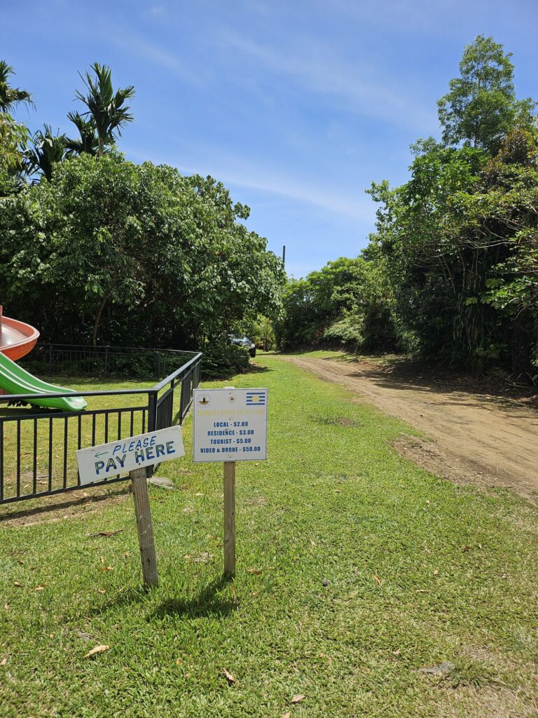 駐車場から10分ほどジャングルを進み階段を降りていくとあります。