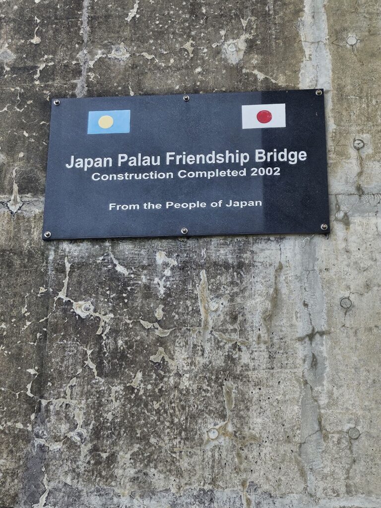 以前の橋は1977年韓国の会社によって造られたものでしたが1996年に突然中央が真っ二つに折れてしまい死傷者で出て、電気、水道、電話も分断されライフラインが麻痺してしまいました。4か月半後に仮設の橋ができたものの無残な姿だったために当時のパラオのナカムラ大統領は日本の力を緊急要請し無償援助を受け日本の鹿島建設が完成させました。これによってさらに親日になったと言われているそうです。