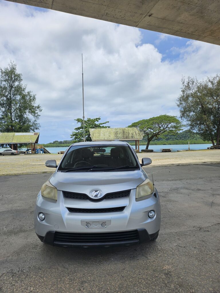 トヨタで19万キロも走っていました。しかし暑いのに冷房は効かない、ブレーキの効きが悪いと悲惨でした。おまけに前のTOYOTAマークもナンバープレートもない(パラオでは普通で後ろのナンバーが必須です)ナビを見ると横浜あたりの表示でした(笑)