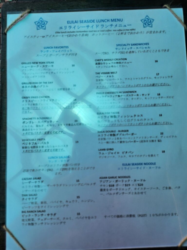 昼食をとります。Elilai Seaside Diningです。ランチ13時半ラストオーダーに間に合いました。
