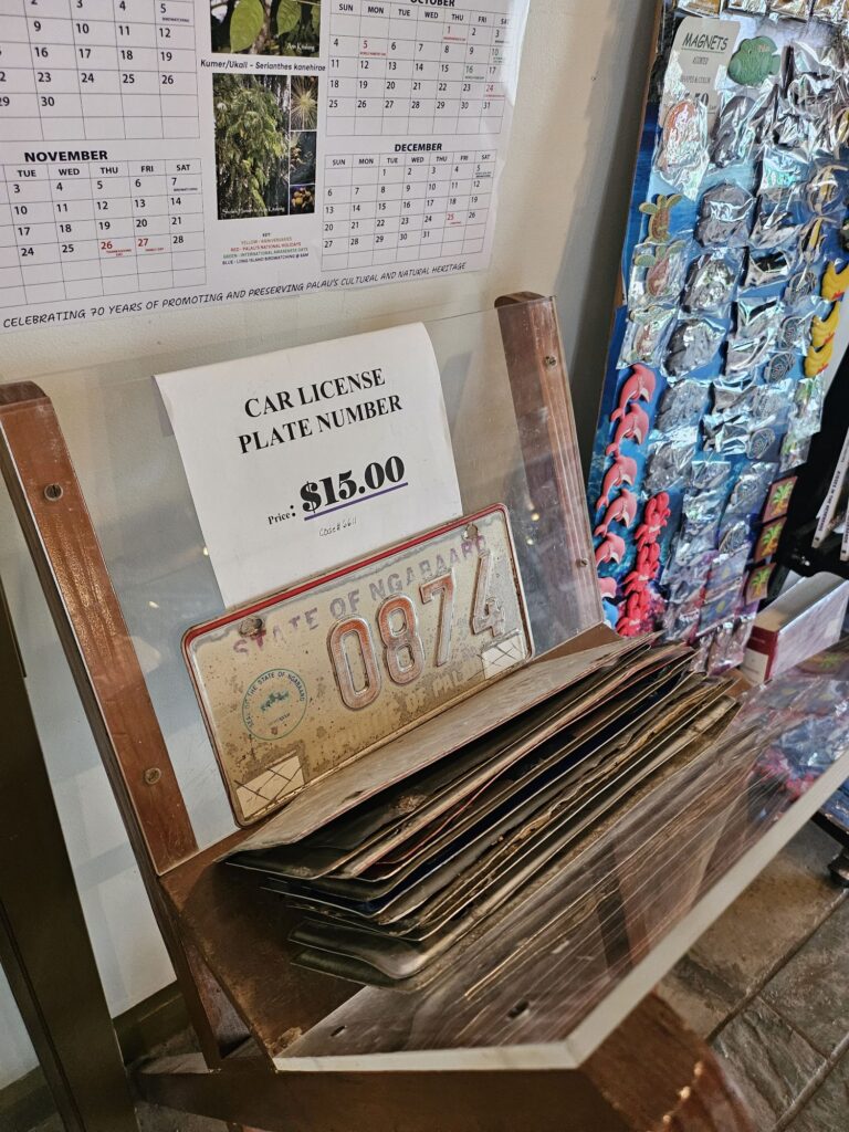 国立博物館の売店でパラオの車のナンバープレートを売ってました。お土産用として作られたものではなく本物(笑)