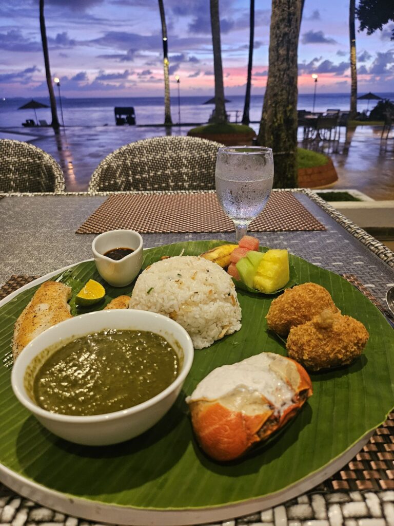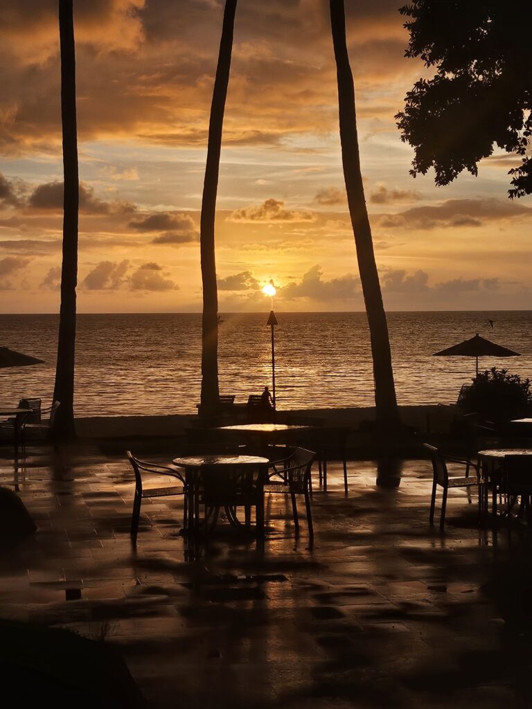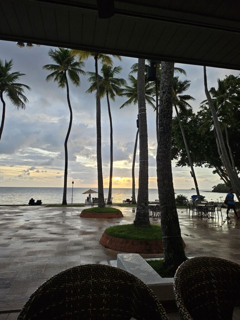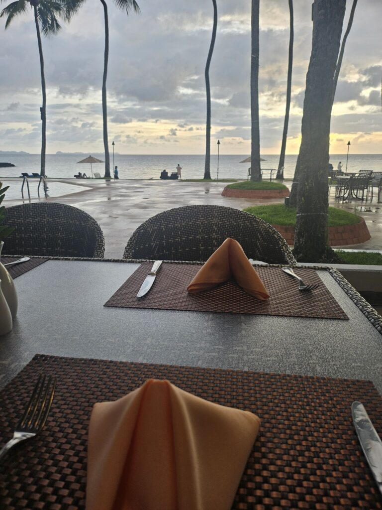 ホテルで海を見ながら食事をしました。サンセットが美しい!
