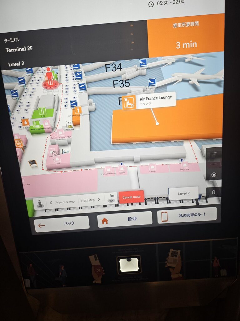 ブカレスト行きは8時10分発です。時間があるのでラウンジへ。機体はエールフランス航空でビジネスなのでエールフランスラウンジが使えます。