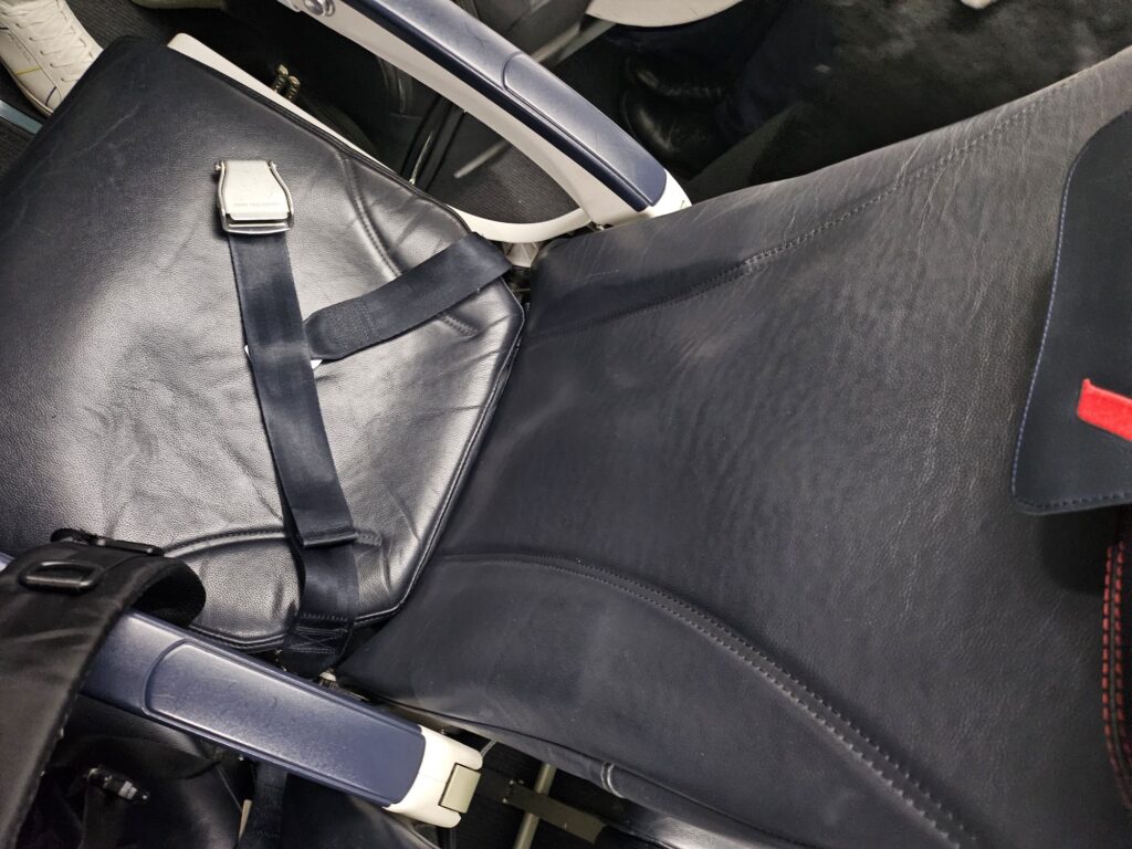 シートは3-3で中央の座席が空いている『なんちゃってビジネスクラス』です。