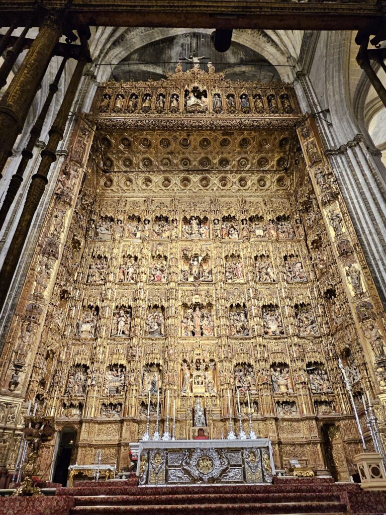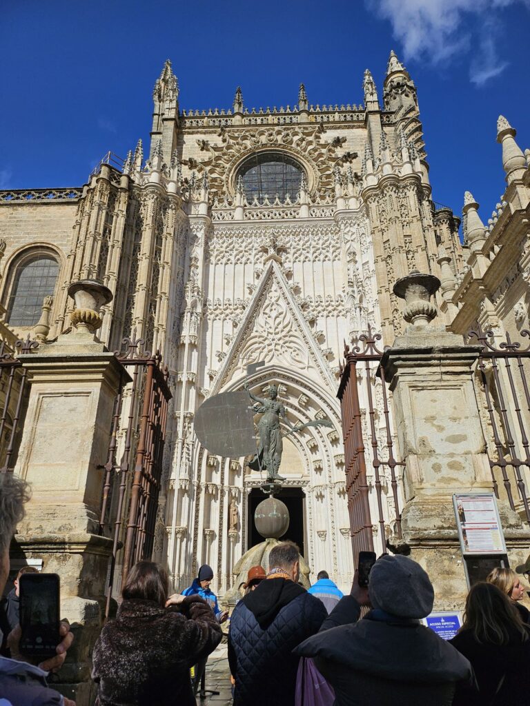オレンジの木がならんでいてなんだかいい香りがします。セビリア大聖堂の入り口です。セビリア大聖堂はヨーロッパで三番目に大きな大聖堂です(一位:ローマ:サンピエトロ寺院、二位ロンドン:セントポール寺院)