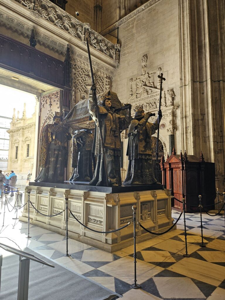 コロンブスのお墓があります。当時の国王が柩をかついでいます。