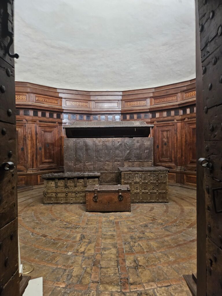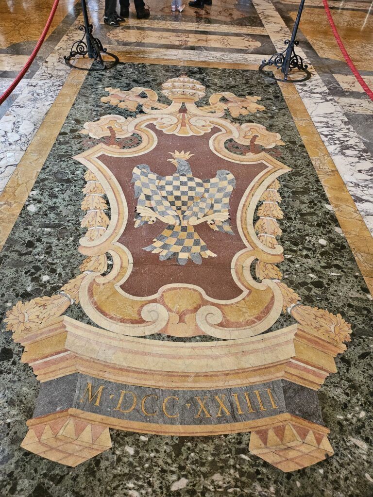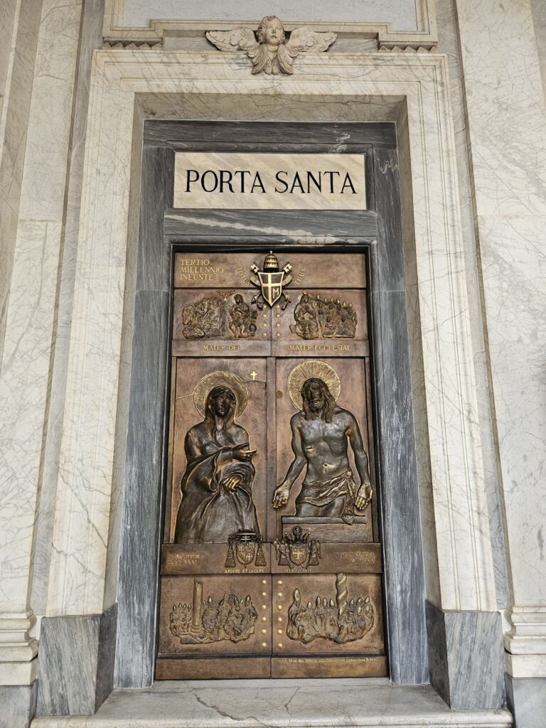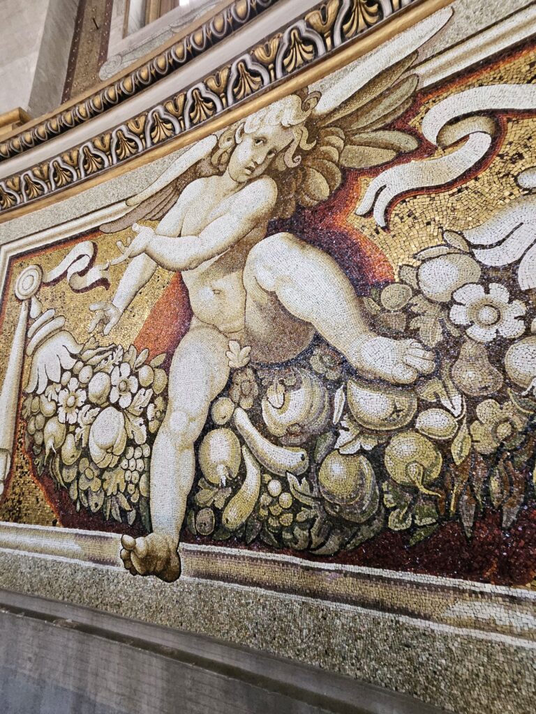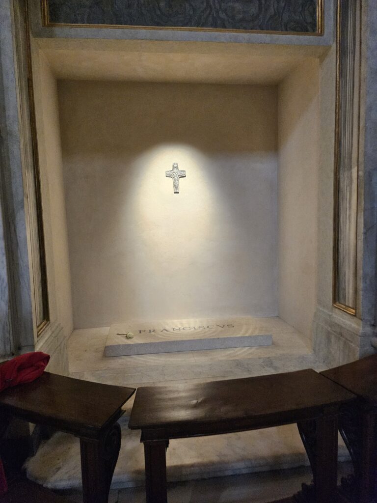 次にサンタ・マリア・マッジヨーレ教会(聖母マリアの聖堂)に行きました。4世紀に教皇リベリウスの夢に聖母マリアがあらわれて「今晩雪の降ったところに教会を建てなさい」と命じられ8月にもかかわらず雪がこの場所に降ったそうです。世界聖堂のなかでも特に重要な教会で母なる教会。ローマ4大聖堂の1つでバチカン管理の教会です。教皇フラシスコのお墓があります。