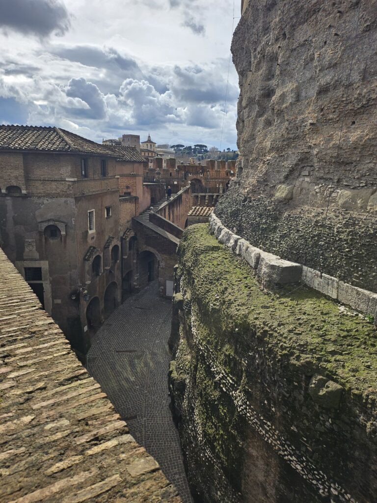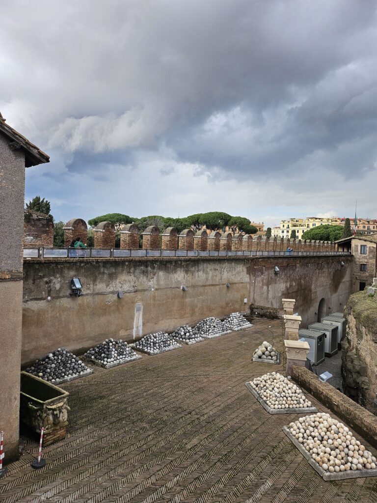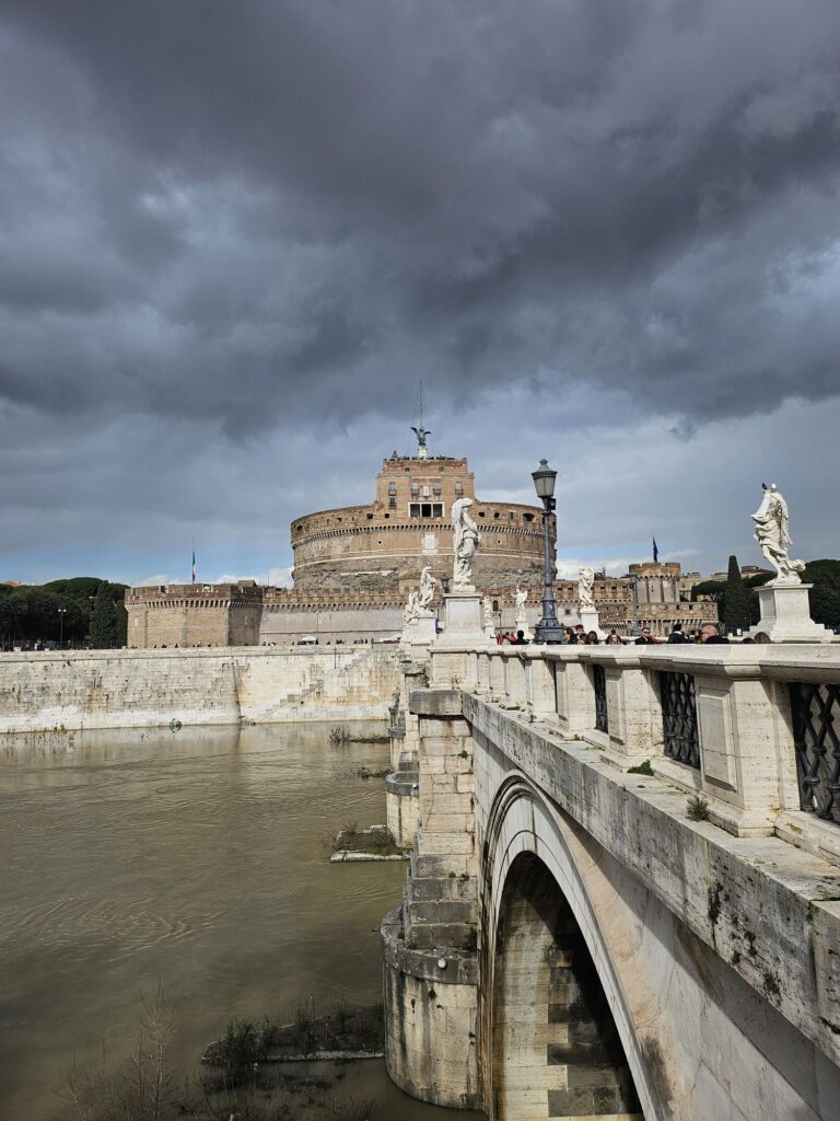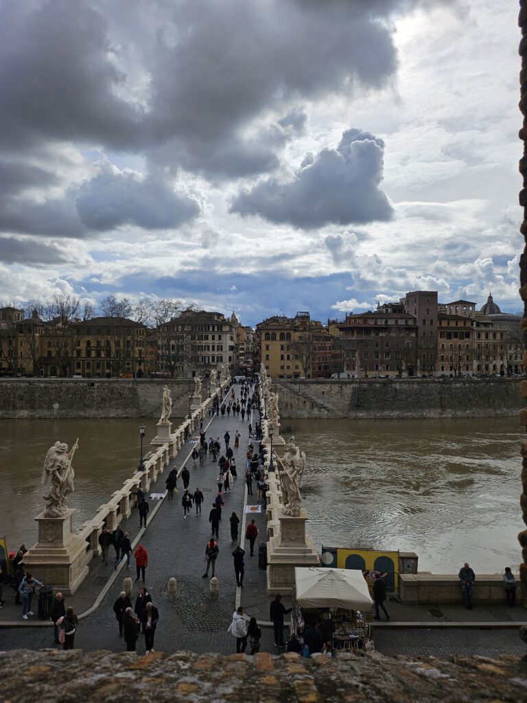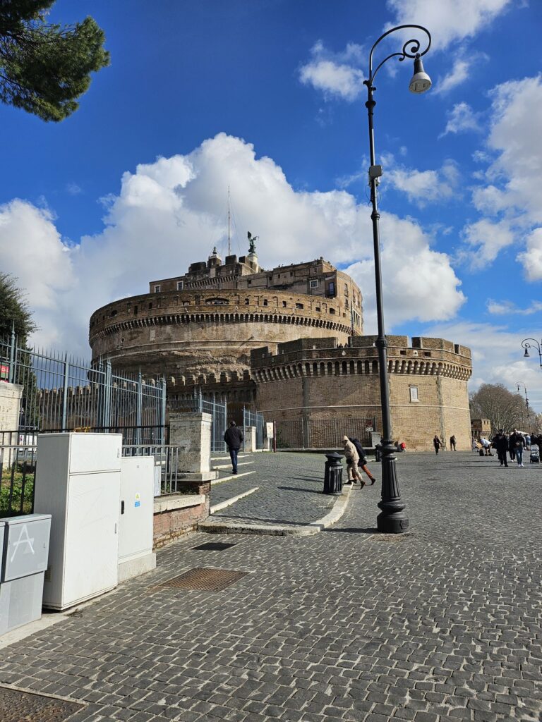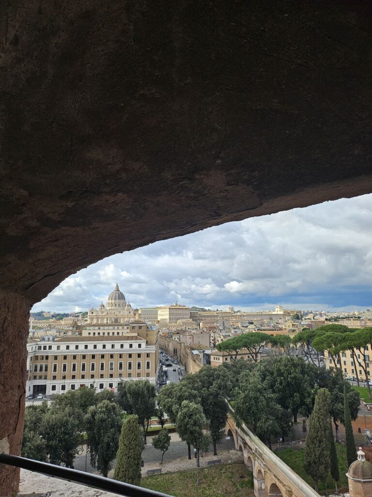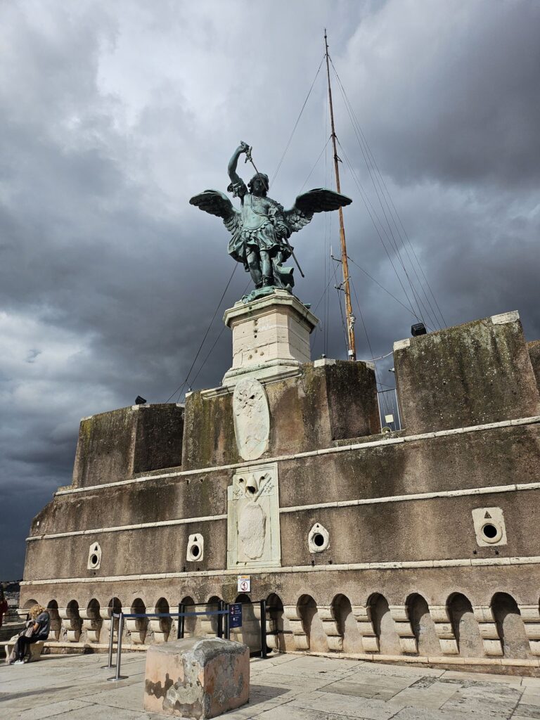 また階とエレベーターで降りてサンタンジェロ城へ向かいます。ローマ法王がいざというときにバチカンから逃げるお城です。