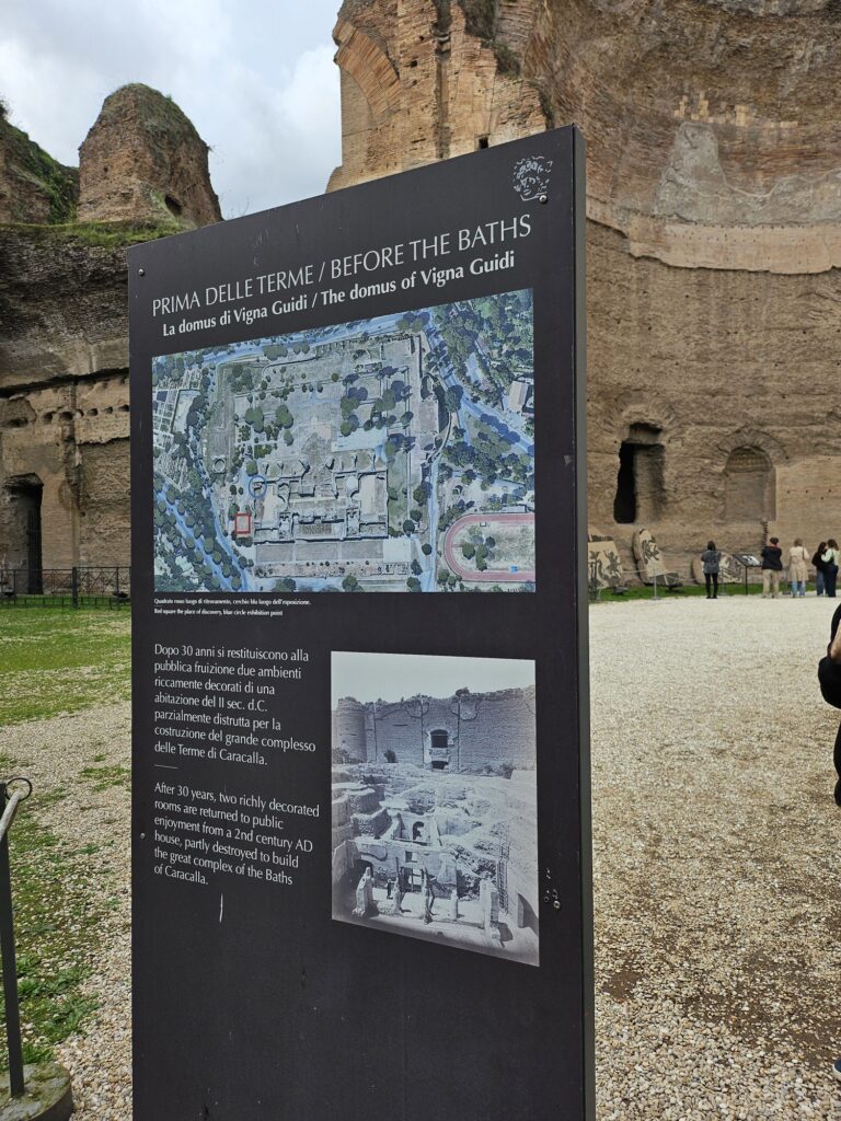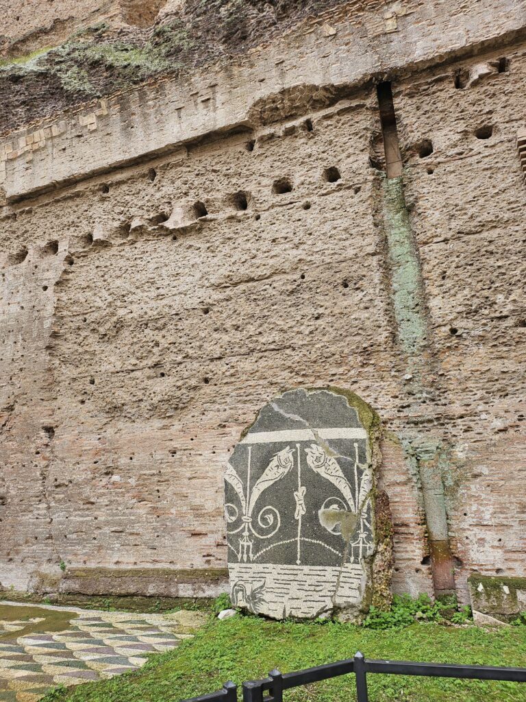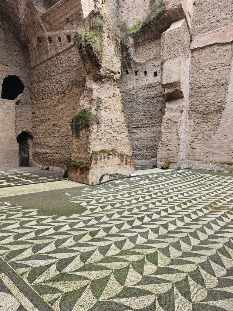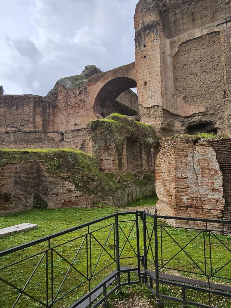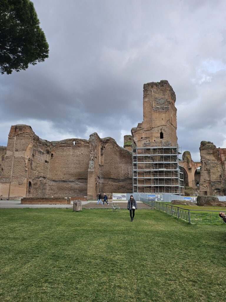 216年にカラカラ帝によって築かれた公衆浴場で2000から3000の浴槽と冷湿、温室、熱室、ジムと図書館があったそうです。大きさに驚きです。